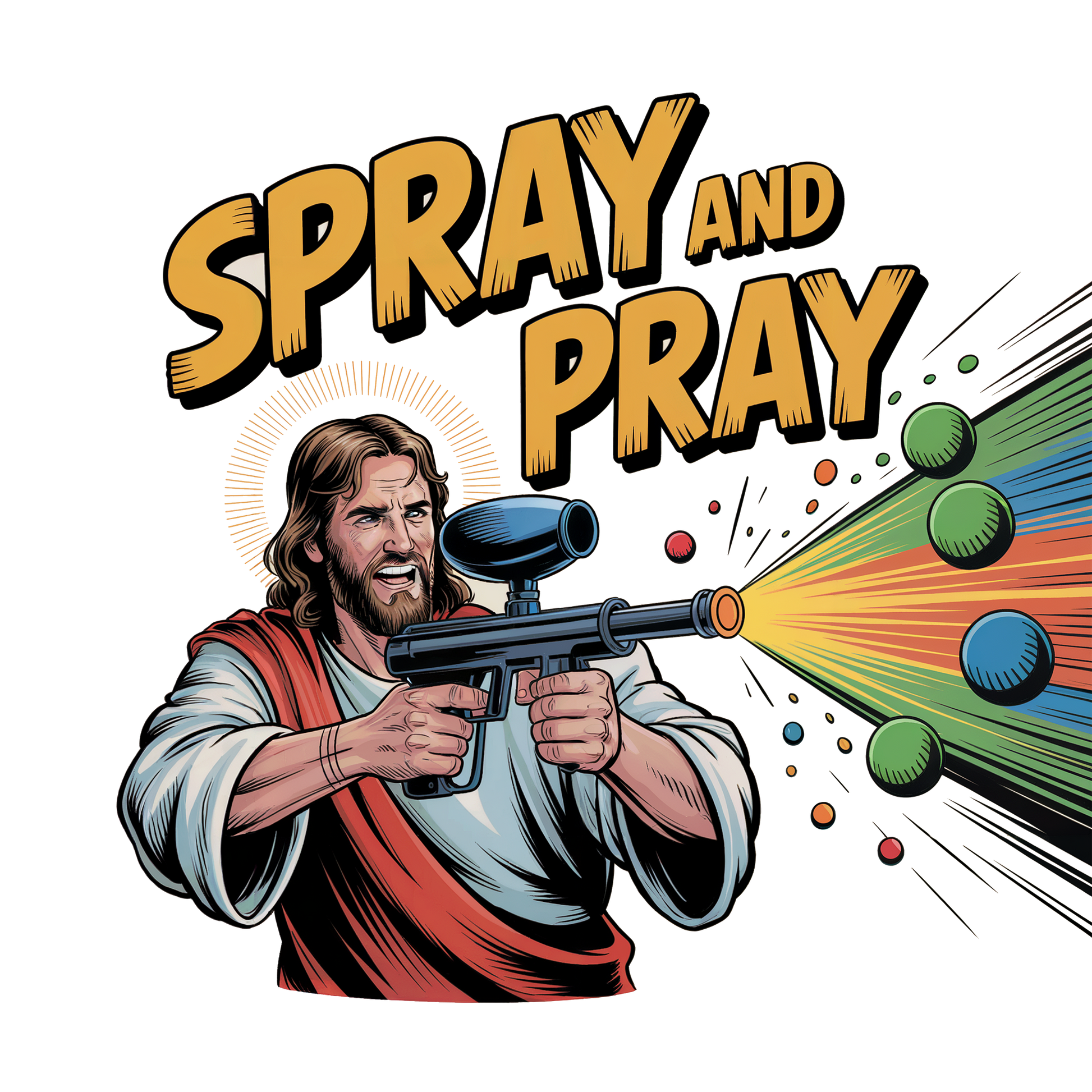 Turn heads and raise your game with our boldest drop yet — the Spray and Pray tee. Featuring a high-powered, halo-crowned warrior of the field mid-rip, this shirt blends divine humor with high-impact design. Perfect for back players, rec ballers, and anyone who believes in firing first and asking for forgiveness later.